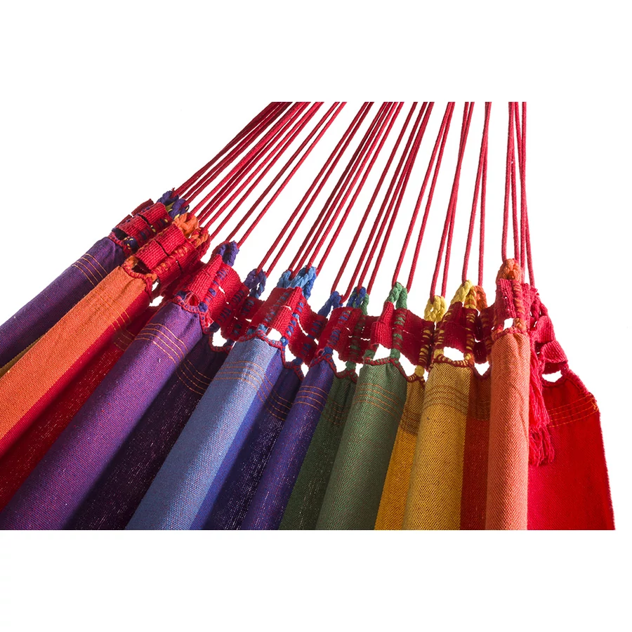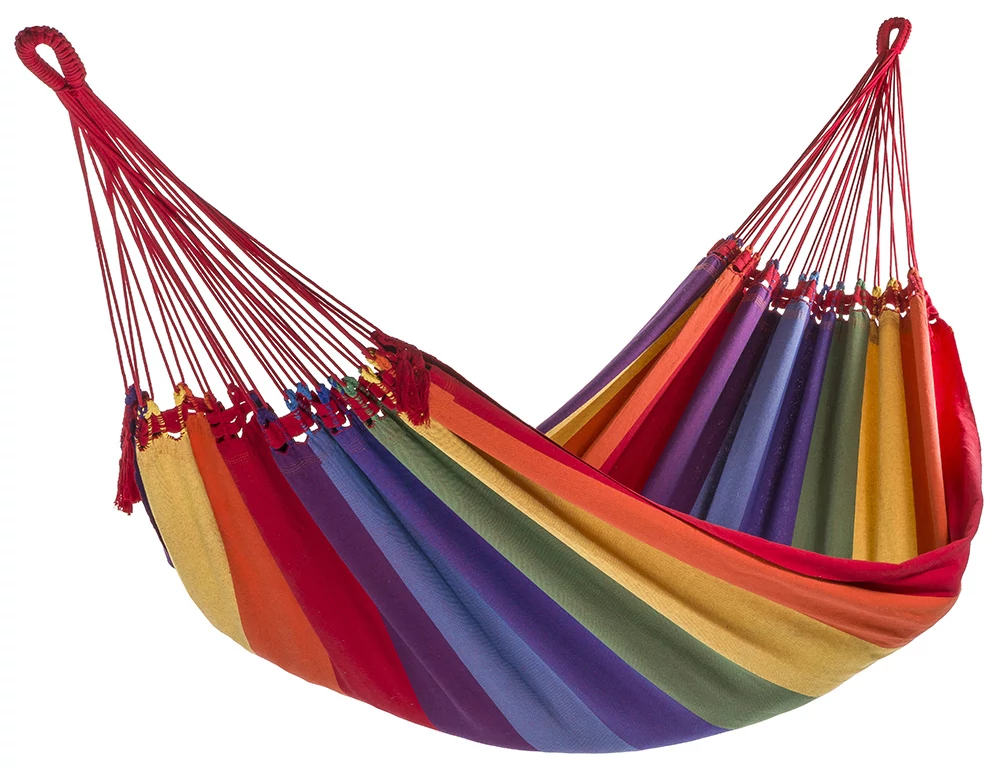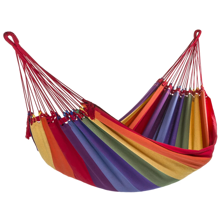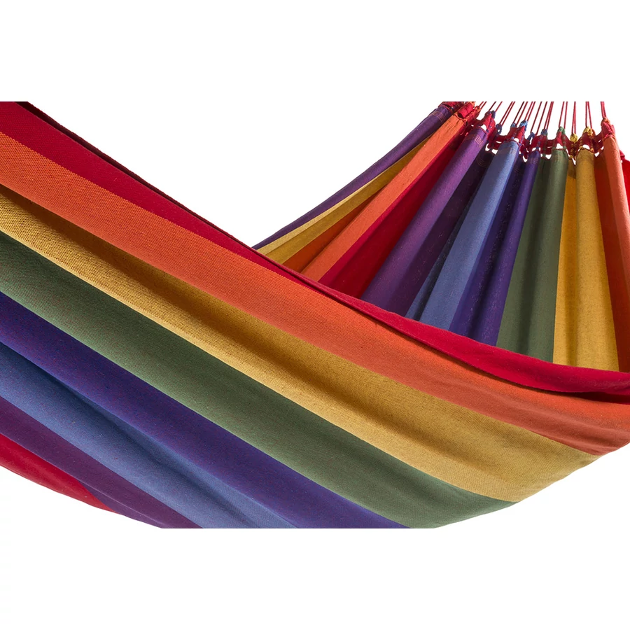 A Rio függőágy egy igazi dél-amerikai színvilágot az otthonába hozó, nagyon kényelmes, erős, és a 160cm-es szélességének köszönhetően biztonságos kétszemélyes függőágy. Akár két felnőtt, vagy három gyermek fekvésére, illetve játszadozására is alkalmas. Igazi egzotikus brazil színek. 3 év gyári és forgalmazói garancia szakadásra!